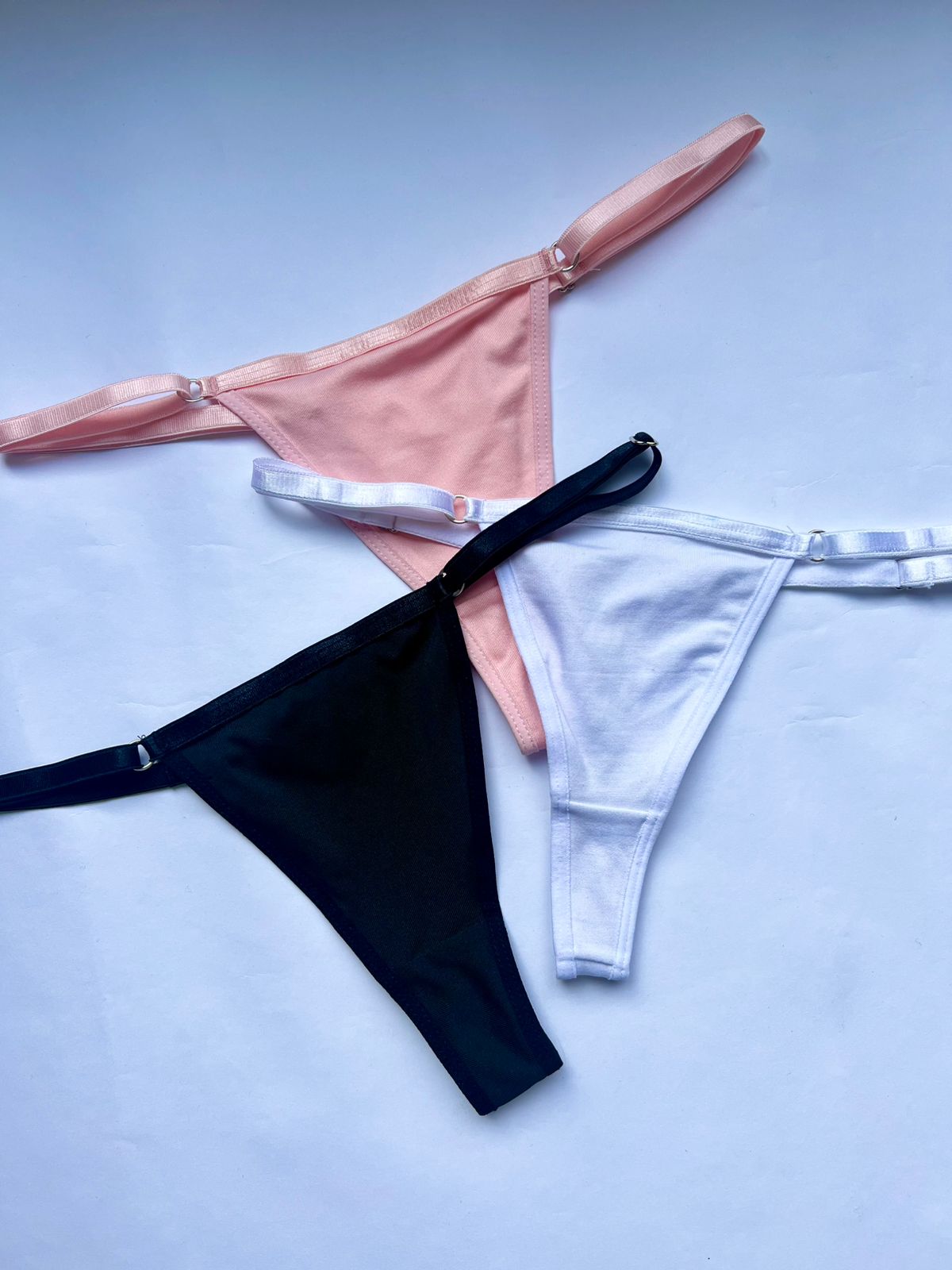 Panty estilo tanga, elaborado en polilicra, con tiras laterales delgadas que se ajustan en las caderas y con un refuerzo en algodón.